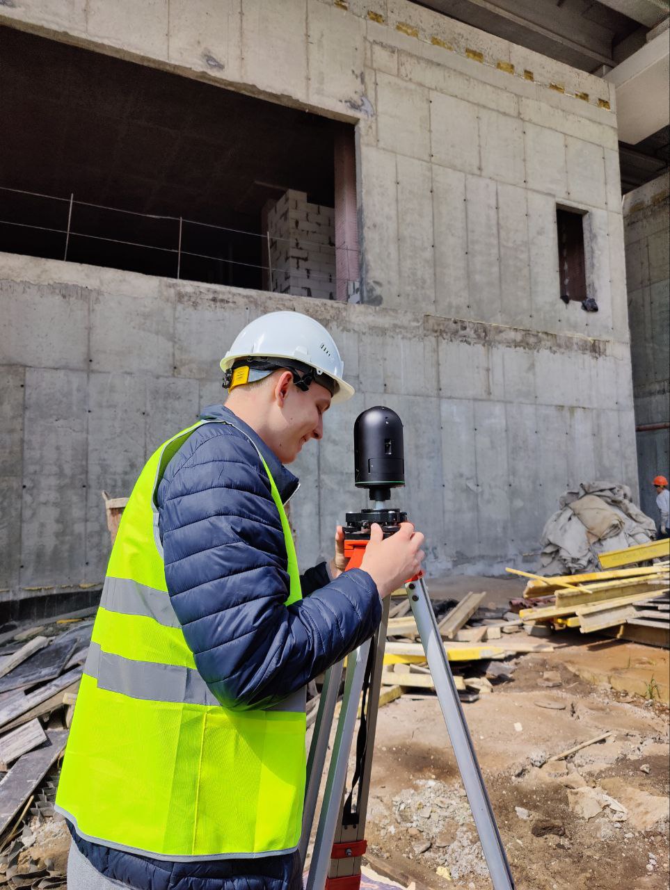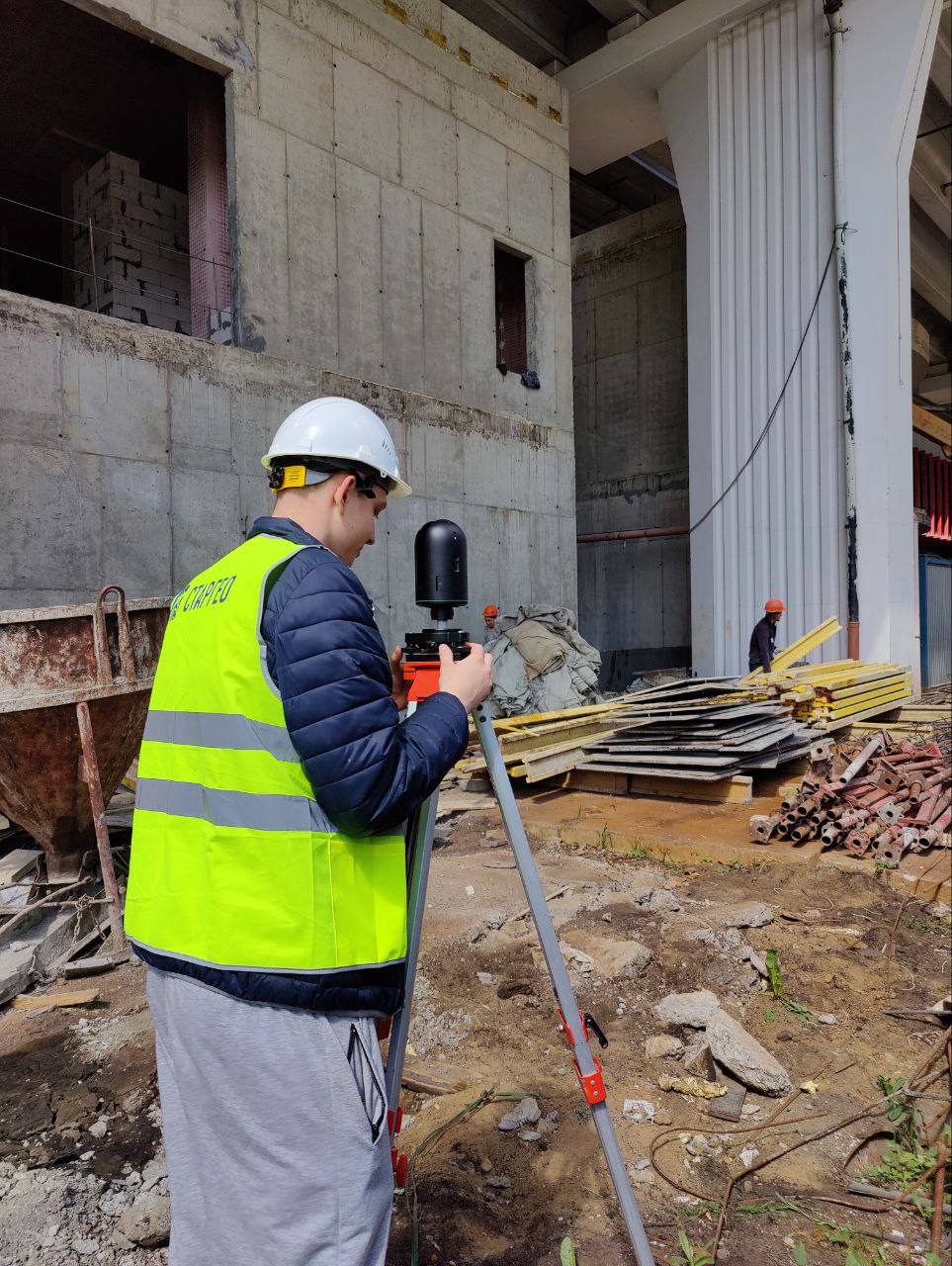В СтарГео новое лицо: наш практикант Артём (на фото в жилетке «СтарГео»). В виду будущей специальности было принято решение о закреплении его за Группой лазерного сканирования (и лично Егором) для организации корректного изучения методов сбора и обработки данных с помощью технологий наземного лазерного сканирования.