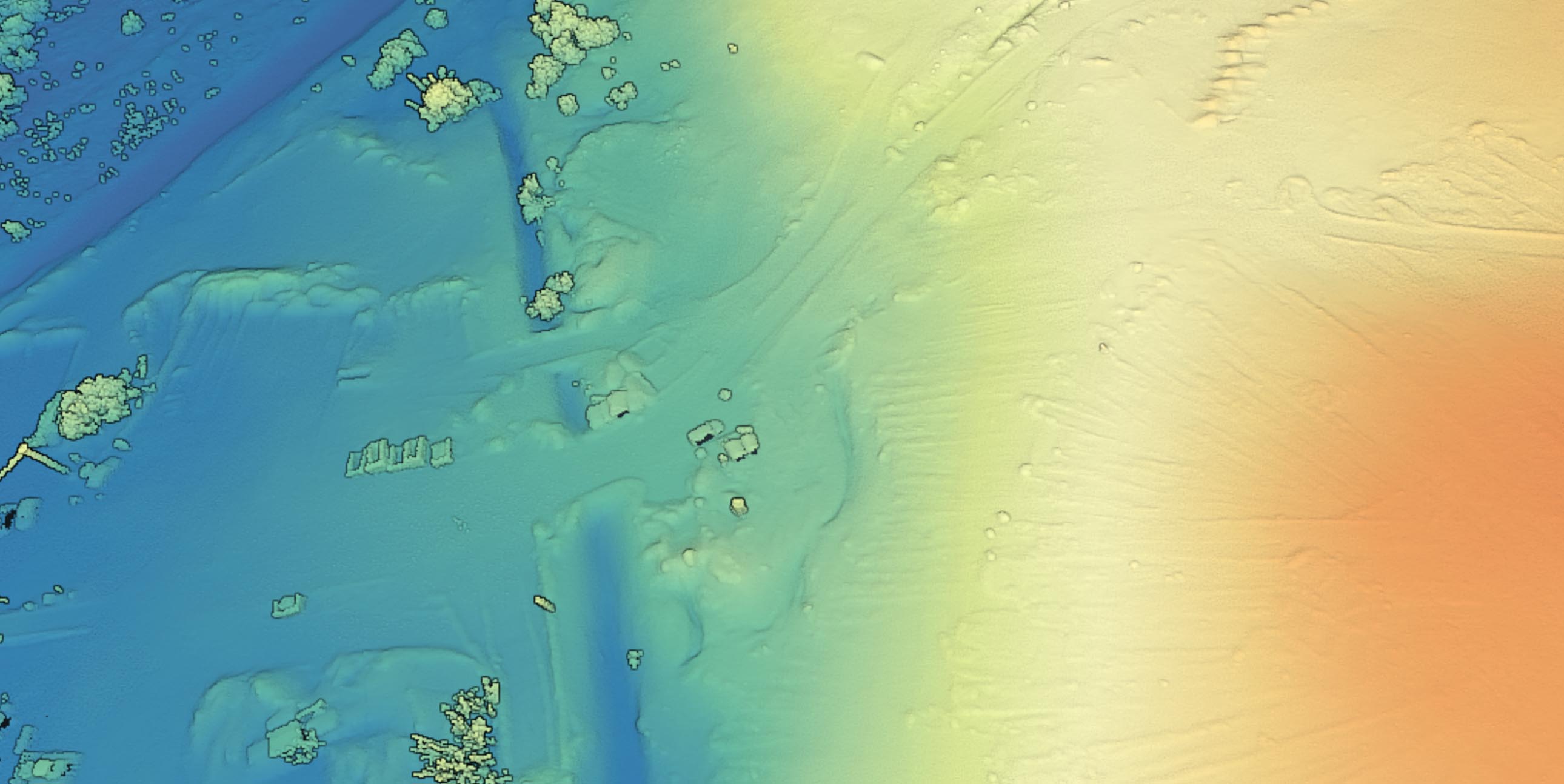 Вид части района работ. Растровые данные – «Теневая отмывка рельефа»
