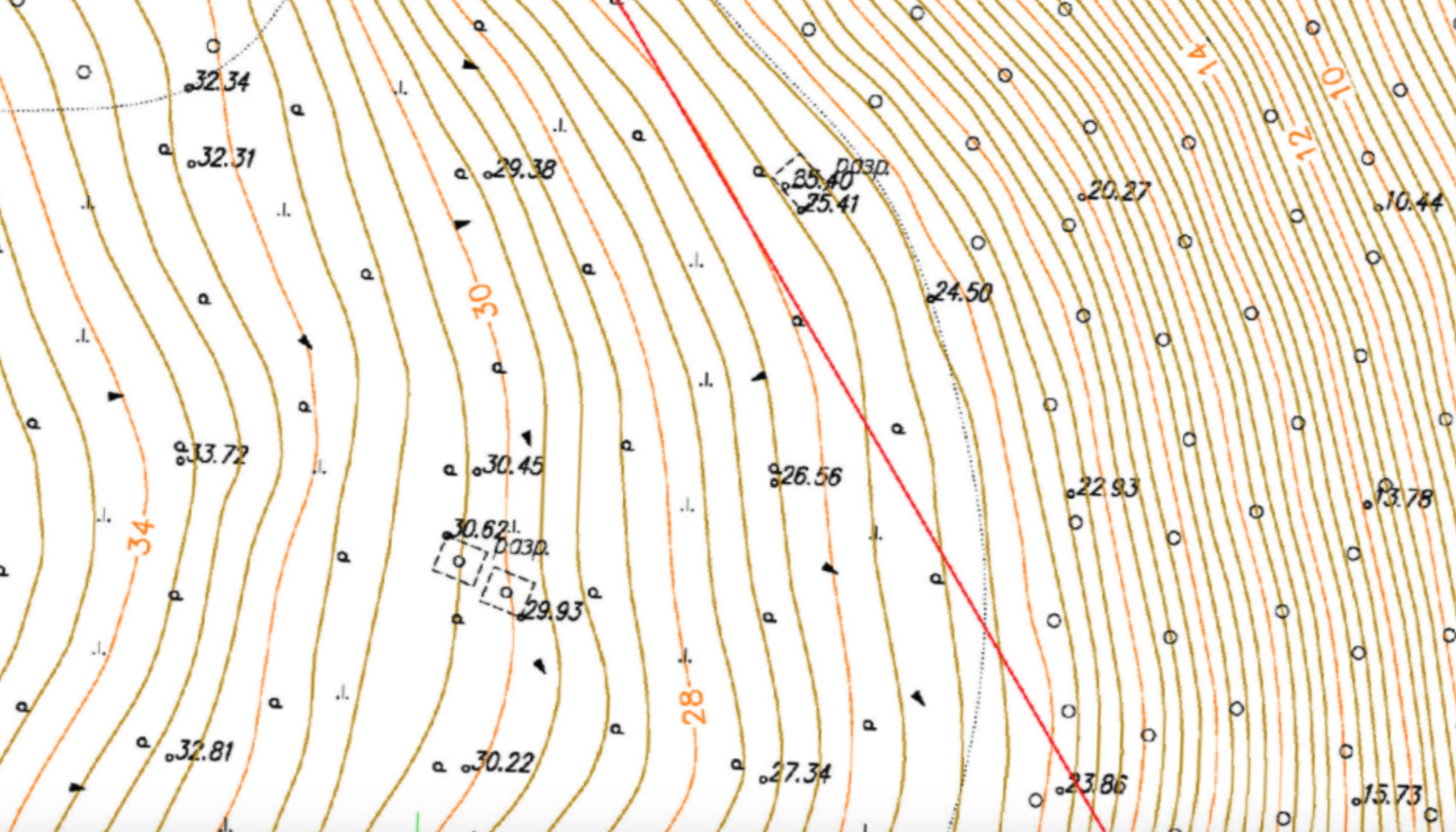 Пример участка готового инженерно-топографического плана части склона