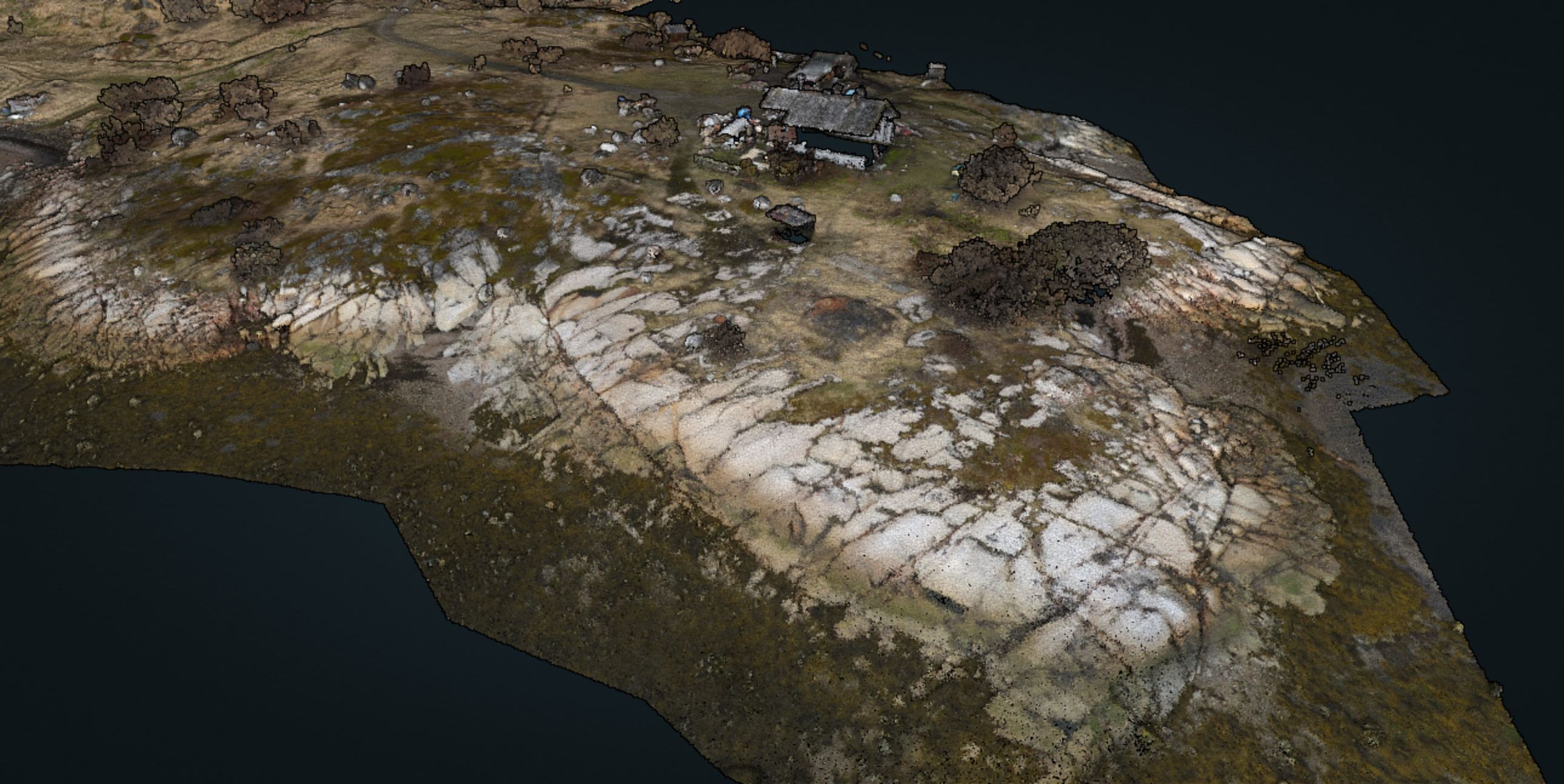 Облака точек участка работ (RGB цвет), скальные породы у залива