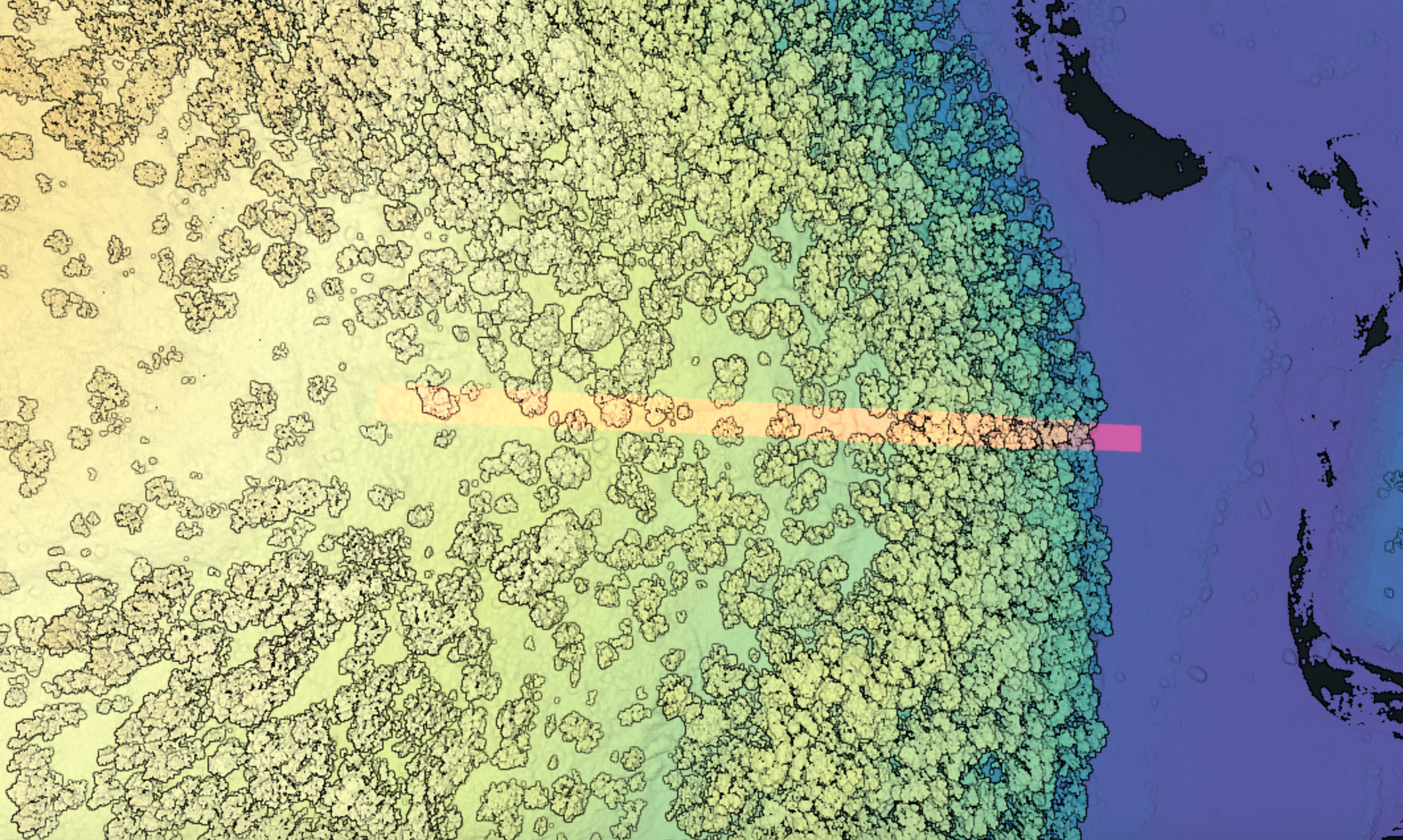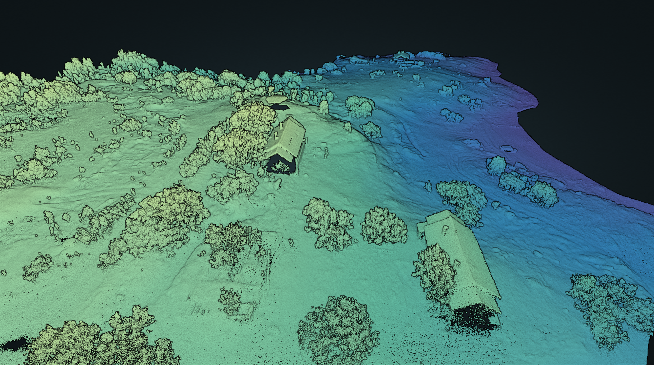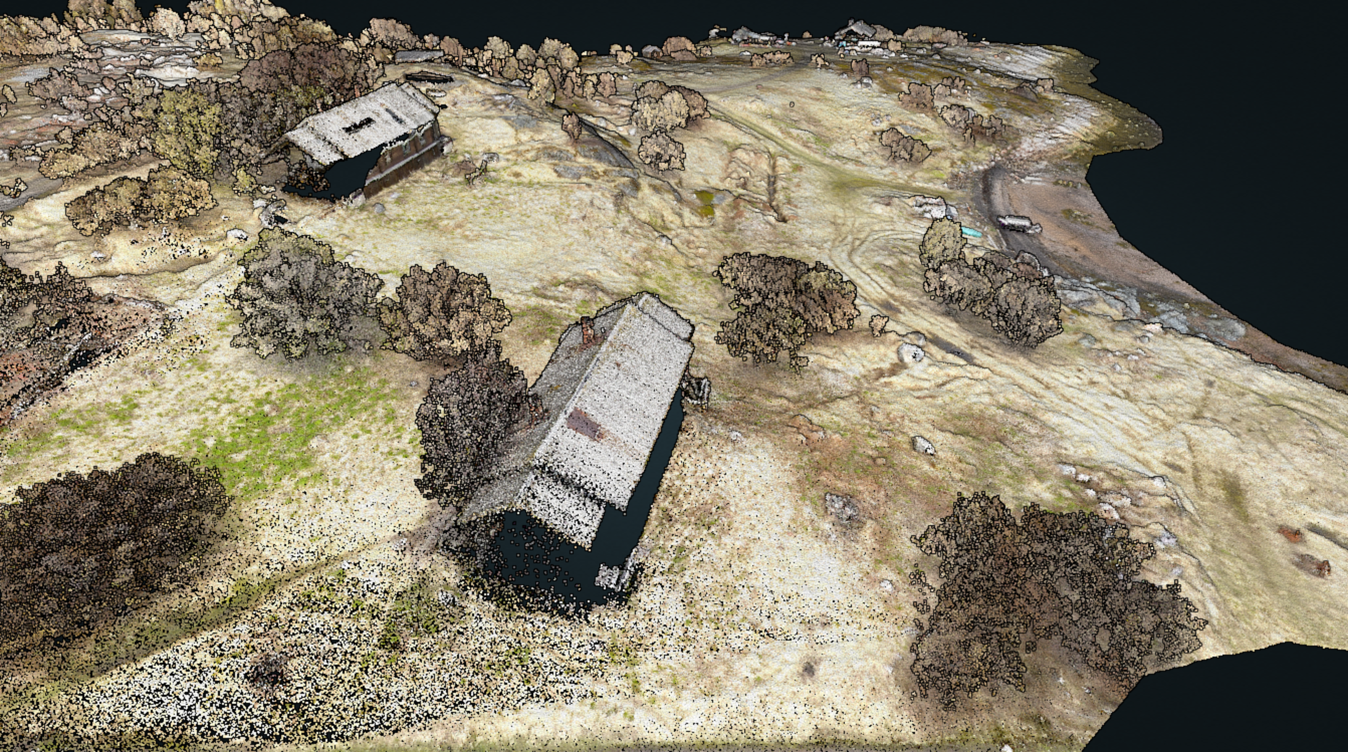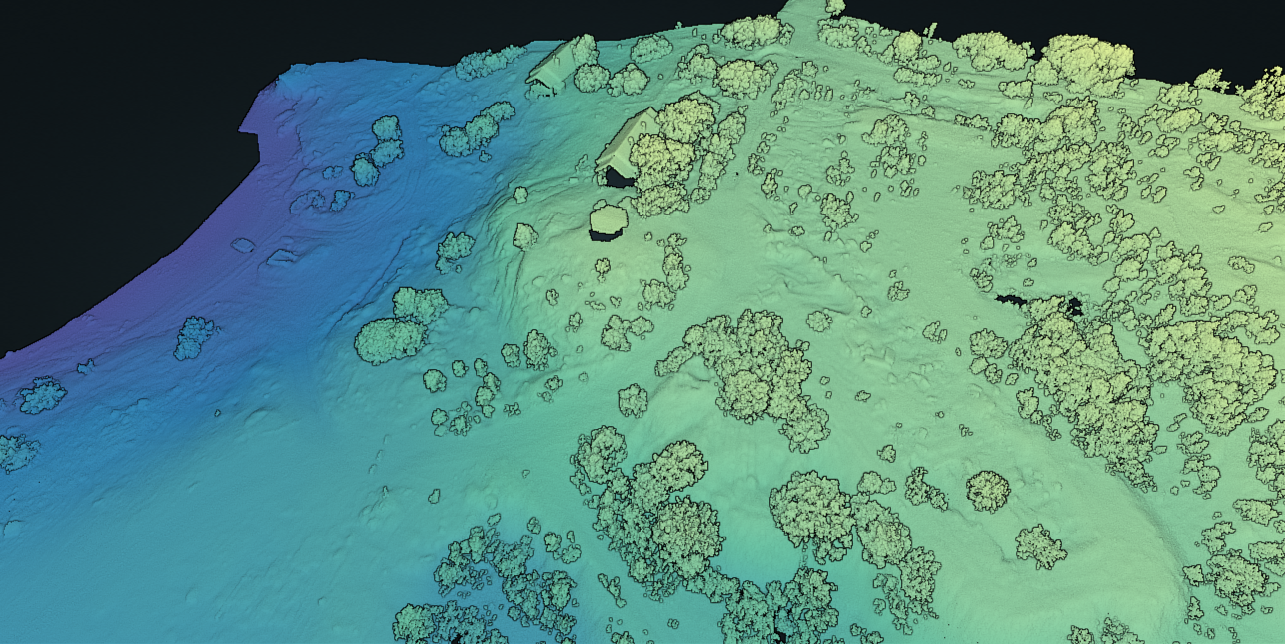 Пример облака точек склона с выделенной областью (деревья и кустарник).