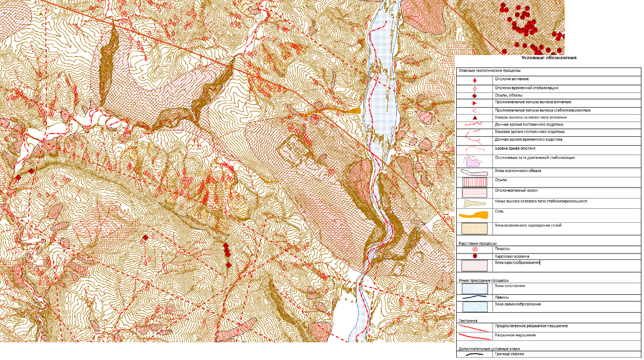 Пример. Выявление опасных геологических процессов для подготовки комплекта карт 1:10 000.