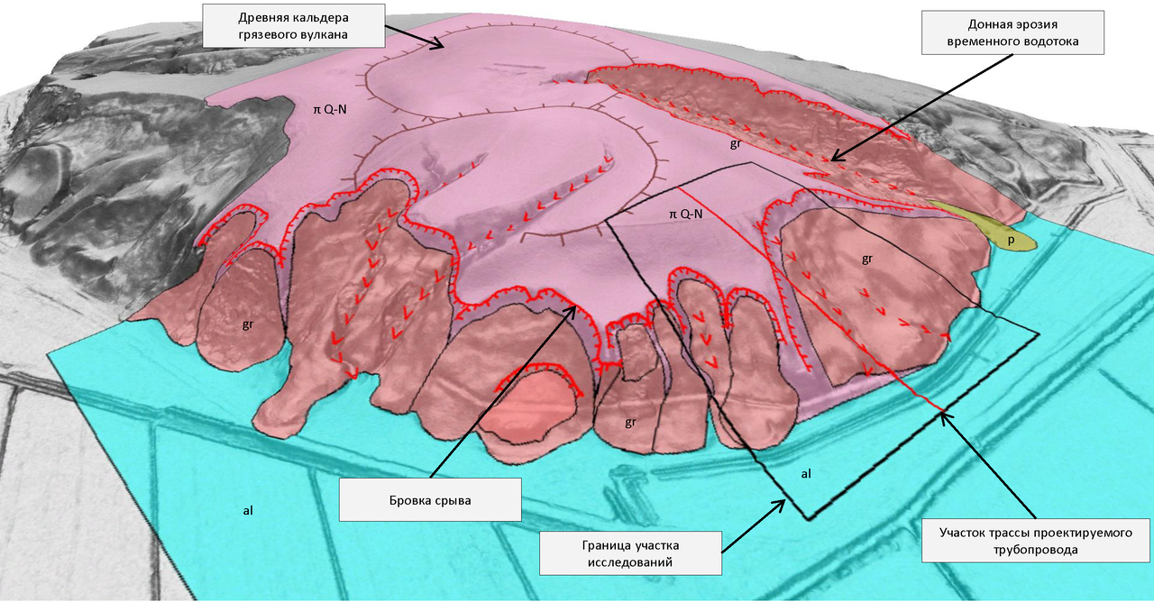 Пример выявления оползней по данным воздушного лазерного сканирования при проведении инженерных изысканий. Проведенное дешифрирование в регионе работ позволило выделить и описать удаленно (до выезда в поле) оползневые участки. На нефтегазовом объекте проводилась полевая заверка выделенных ОГП. Произведена сходимость натурных наблюдений в точках наблюдений с данными декодирования и интерпретации ЦММ/ЦМР.
