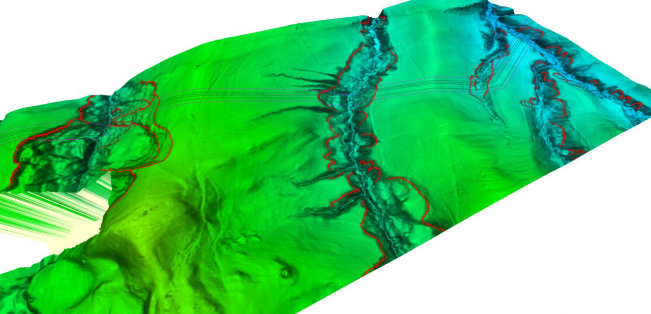 При проведении инженерных изысканий необходимо было составить карту оползневого участка с помощью данных, полученных воздушным лазерным сканированием. Для этого были использованы данные современных геологических процессов и условий, полученные также с помощью воздушных лазерных сканирований. Кроме того, в анализ были включены карты, выпущенные ранее по геологическим, гидрогеологическим и четвертичным отложениям. Благодаря получению цифровой модели рельефа удалось точно отобразить признаки экзогенных геологических процессов, а также их облик и метрические характеристики.